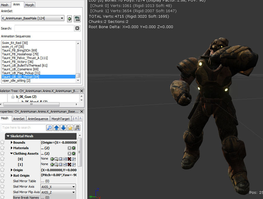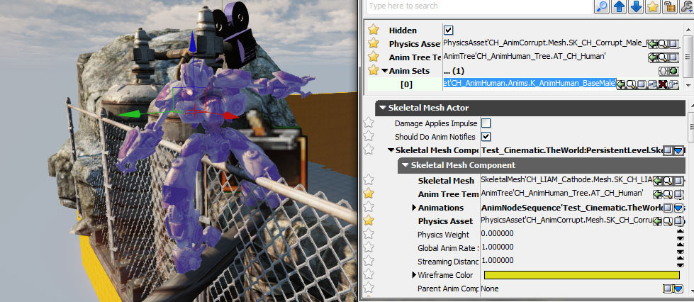 Next you will need to assign him an AnimSet and make him hidden in the level. The Anim set can be found in AnimSet' CH_AnimHuman.Anims. K_AnimHuman_BaseMale'.