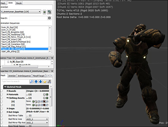 If you wish to previous the animations for this set you can double click it and select the Anim tab on the top left hand side and scroll down the available animations. Double click on an anim to assign it to him and then press play to preview. We can then use these anims inside of Kismet.