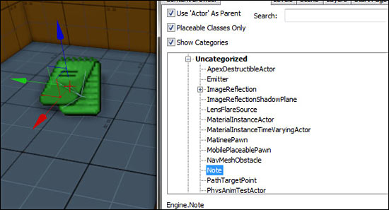 I have a Note in my setup to teleport the player later on. If you wish to add one of these they can also be found in Actor classes - Uncategorised - Note.