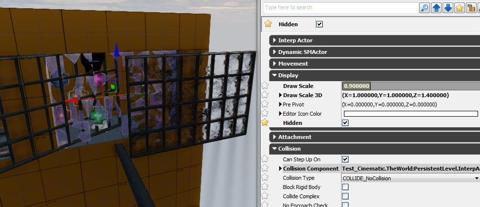 In this example there are also some windows LIAM smashes through. I have two sets of windows. One is the unbroken set which have no properties changed apart from they are Interpactors. (Right click - Convert - Mover). I also have a broken set which are also Interpactors and are set to hidden.