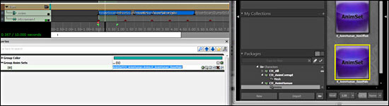 This method will keep the fluidity of the movement of the character. After we have the movement of the character sorted we can then add animations to the character. To add animations to your skeletal mesh right click on the LIAM group you created in your Matinee and Add New Anim Control track. You also need to click on the group LIAM and in the properties add a new Group Anim Set item and plug in the K_AnimHuman_BaseMale Animset. Now when you press Enter (Add key) on the Anim track you can select from a list of animations you want to add to your character. In this example I used the Hoverboard animations as these were the closest I could find to make it look like he was sliding down the rail.